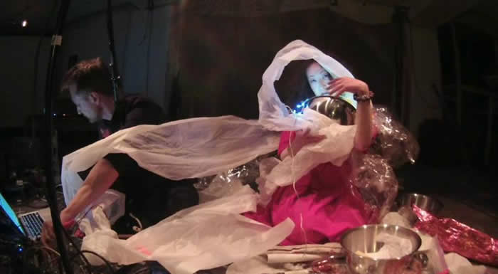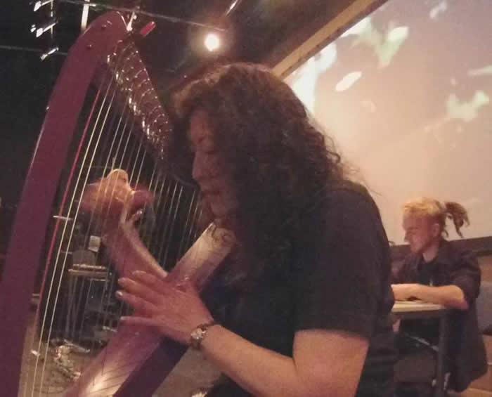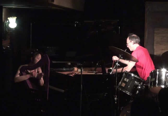 'unplugged' performance with Yumi Hara (vo, harp, found objects) and Guy